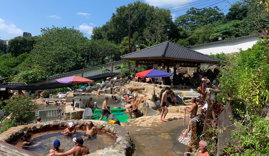 *BEITOU HOT SPRINGS: Just under one-hour's metro journey from Taipei's Main Station, you'll find Beitou Hot Springs. To get there, take the red Tamsui-Xinyi metro line to Beitou Station and then transfer to the pink line, for one stop, to Xinbeitou (the pink line train is super cute and colorful). There are over 20 hotels and bath houses in the area, offering public or private bathing options, but we went to the mixed gender, public Beitou Public Hot Spring (AKA Millennium Hot Spring because it was opened to the public in December 1999). This open-air complex includes three hot pools (ranging from warm to scalding) and two cold ones. It can be quite crowded. The pools are closed at various intervals each day, for cleaning (open times are listed in a photo below). Entrance is 40NT (~$1.30 USD). Towels are not provided. There are coin-operated lockers for your belongings. Other than the public hot springs, most other Beitou attractions are closed on Mondays (we found this out the hard way), so I suggest visiting another day of the week.